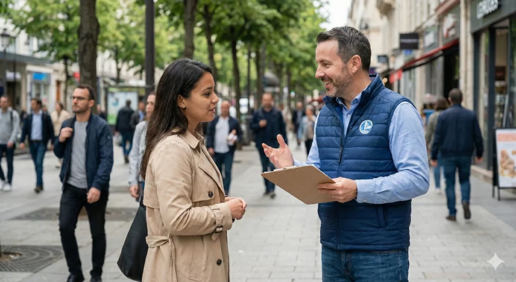 Mettez-vous à la place d’un individu que l’on aborde dans la rue. Vous n’avez pas sollicité l’échange, il s’impose à vous de façon inattendue. Vous attendez donc, au minimum, d’avoir une présentation authentique du projet dont on vous parle avec des exemples d’actions concrètes. Vous attendez du recruteur face à vous qu’il soit sympathique, patient et qu’il réponde à vos éventuelles questions.