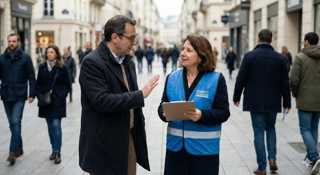 Le cœur de sa mission consiste à transmettre les valeurs associatives en faisant preuve de transparence et en expliquant l’impact réel de chaque don. Le recruteur de donateur rassure les personnes, instaure une relation de confiance et ne force jamais la décision.