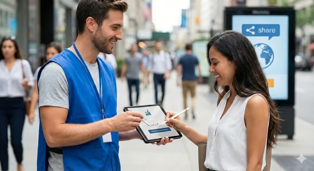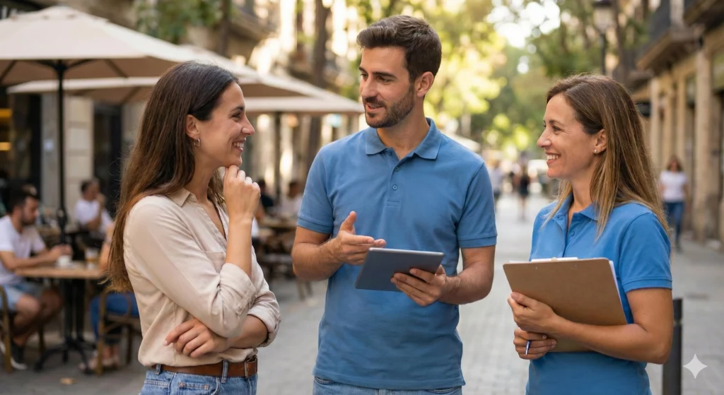 Ici, les interventions se passent aussi bien dans les grandes villes que dans leurs périphéries. Les missions “étoiles” combinent la stabilité des missions fixes et le dynamisme des missions itinérantes. Cette flexibilité géographique est un atout qui permet aux recruteurs d’atteindre différents territoires tout en gardant un point d’ancrage dans les grandes villes. Ce type de mission est idéal pour optimiser les stratégies de collecte de fonds. Les équipes ajustent leur approche selon le lieu où elles se trouvent et les spécificités locales.